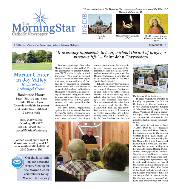 Marian Center’s Morning Star newsletter. Keri Tarrant, who is the second speaker for the women’s retreat at St. Mary’s on October 10th, has shared the link to the most recent newsletter from  the Marian Center. We hope you take a … Continue reading →